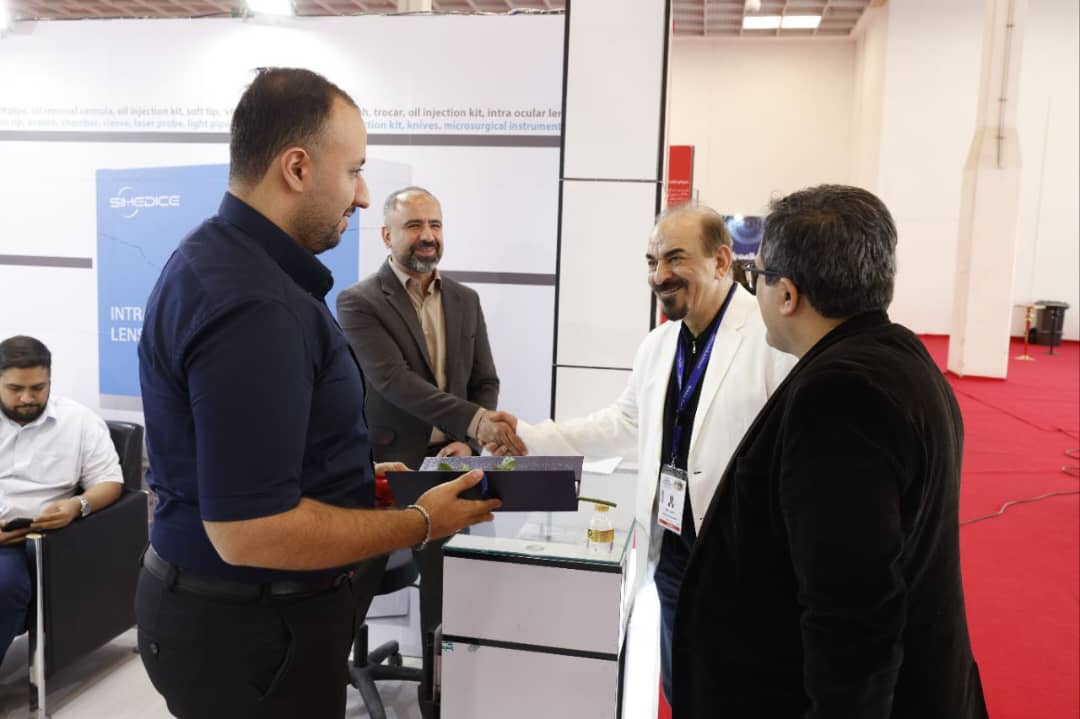 در آخرین روز از کنگره سی و چهارم دبیرکل انجمن علمی چشمپزشکی ایران(دکتر حامد قاسمی) و مدیرعامل انجمن چشمپزشکی ایران(دکتر ابوالقاسم موسوی) ضمن بازدید از غرفه شرکتهایی که در کنگره سی وچهارم ایفای نقش کردند، از حضور و حمایتشان تشکر و به آنها لوح تقدیر اعطا نمودند.